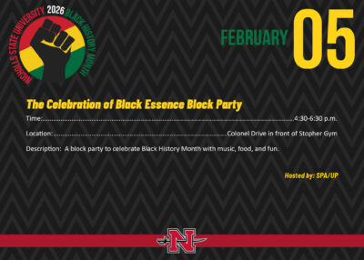 Black History Month 2026 will start a series of events to honor not only African American history across our nation but also the important African American history on our campus and within the local area. Lectures, panel discussions, musicals, plays, themed meals, open mic nights, and other activities are all part of the festivities. The planned events promote unity, diversity, and equality on campus and within the local community.
