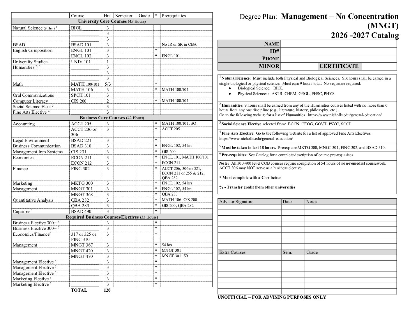 Bachelor of Science in Management – no concentration