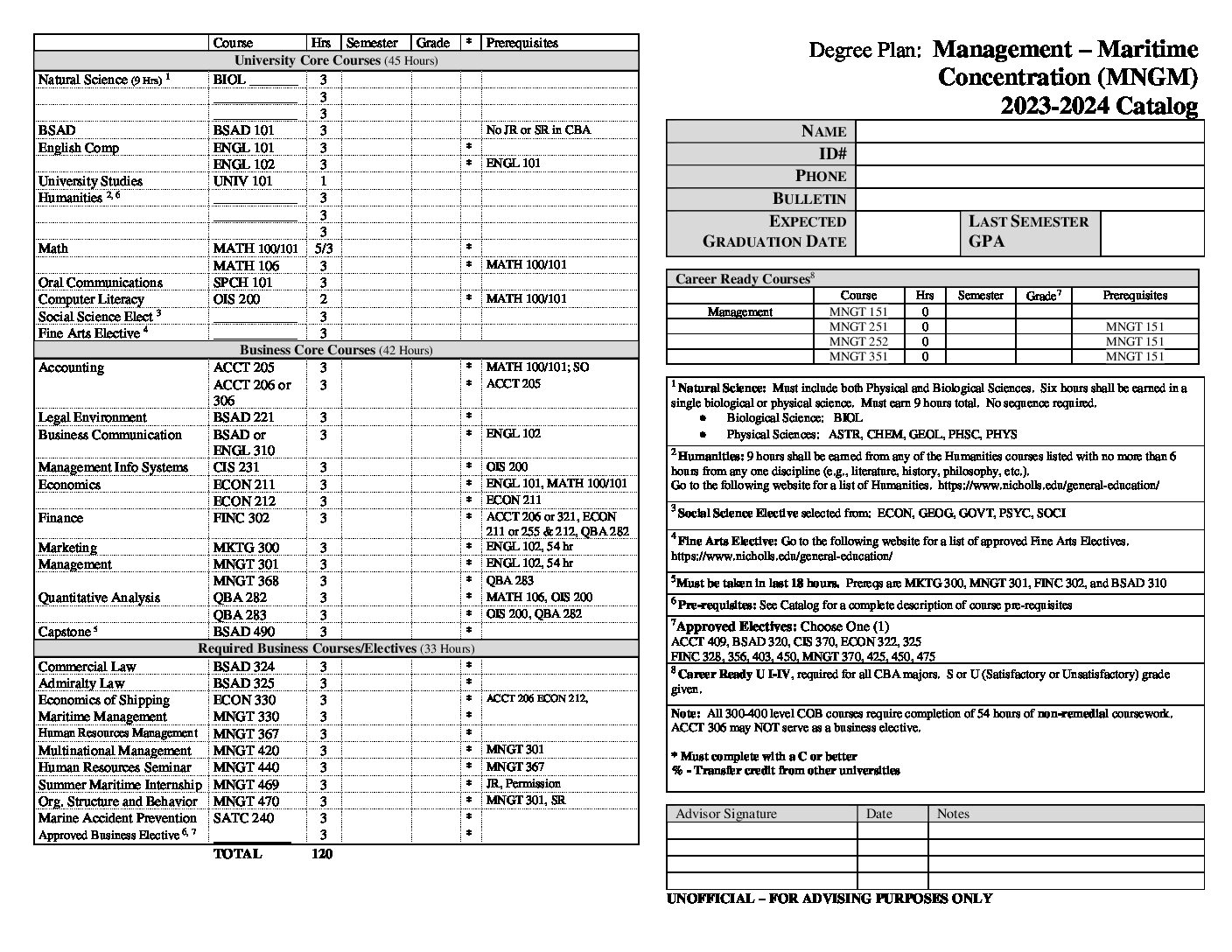 SATC 240:  Marine Accident Prevention, and MNGT 469: Internship.