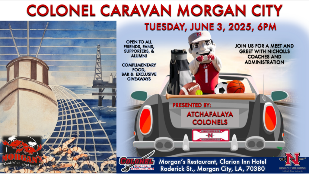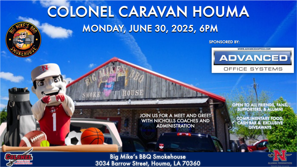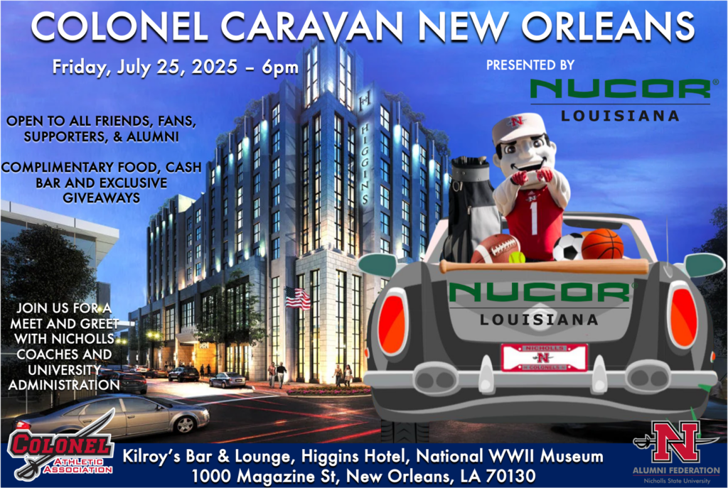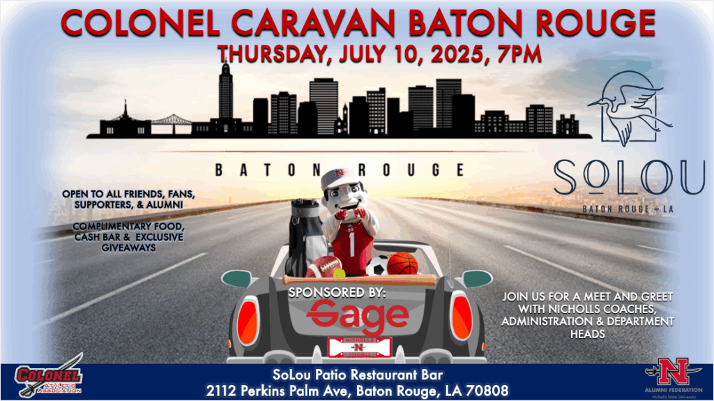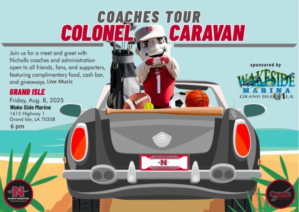 Our Colonel Caravan Coaches Tour is an extraordinary community outreach event that highlights the strong bond between Nicholls, Colonel Athletics and our extended community. By traveling to various cities across Louisiana, the event connects fans, alumni, friends, and supporters with Nicholls’ coaching staff and university administration. It’s a welcoming platform for meaningful engagement, featuring complimentary hors d’oeuvres, a cash bar, and exclusive Nicholls giveaways. This event not only fosters school spirit but also offers a unique opportunity for sponsors to prominently showcase their support and brand as Title Sponsors at these vibrant gatherings.
