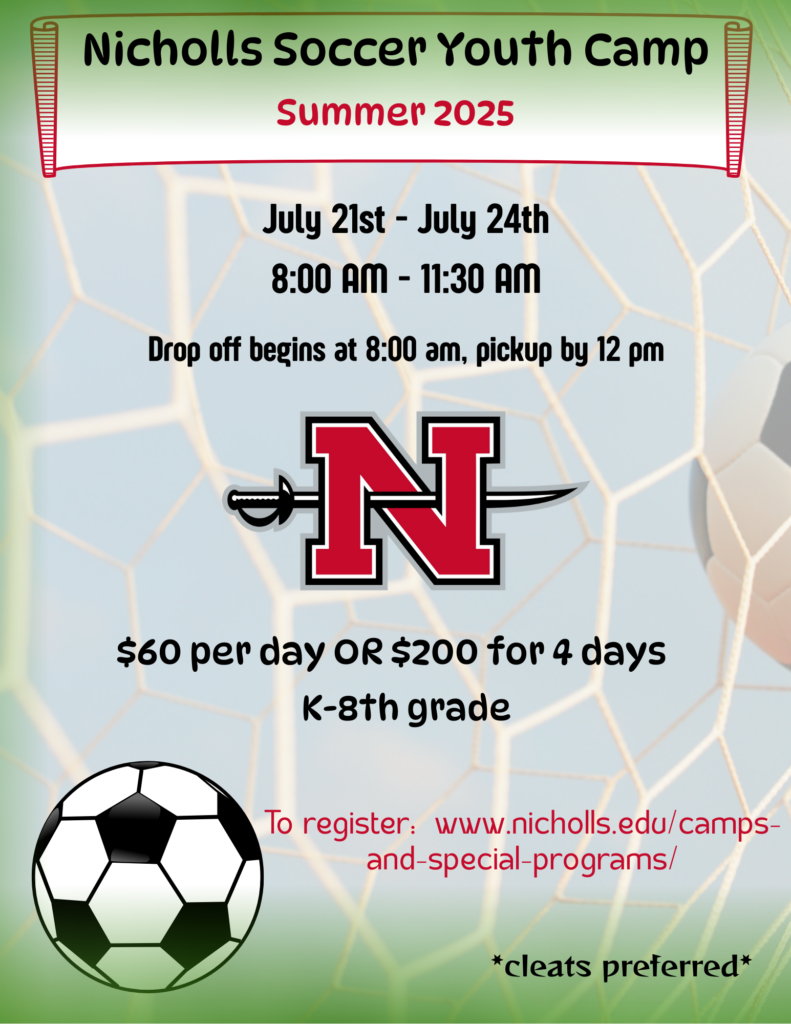 Nicholls State University is excited to announce that we will have 2025 summer camps!  Please continue to check our website for updates on new specialized camps. Registration is open!