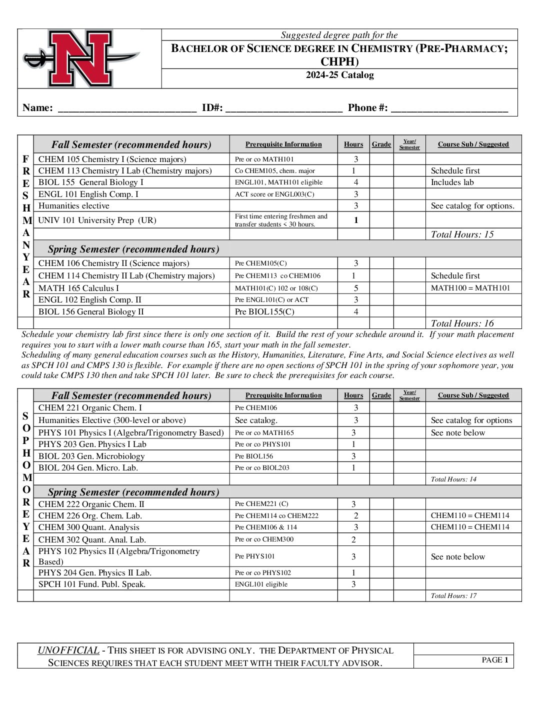 The Department of Physical Sciences offers courses in astronomy, chemistry, geology, physical science and physics and a Bachelor of Science (B. S.) degree in Chemistry with concentrations in the following:
