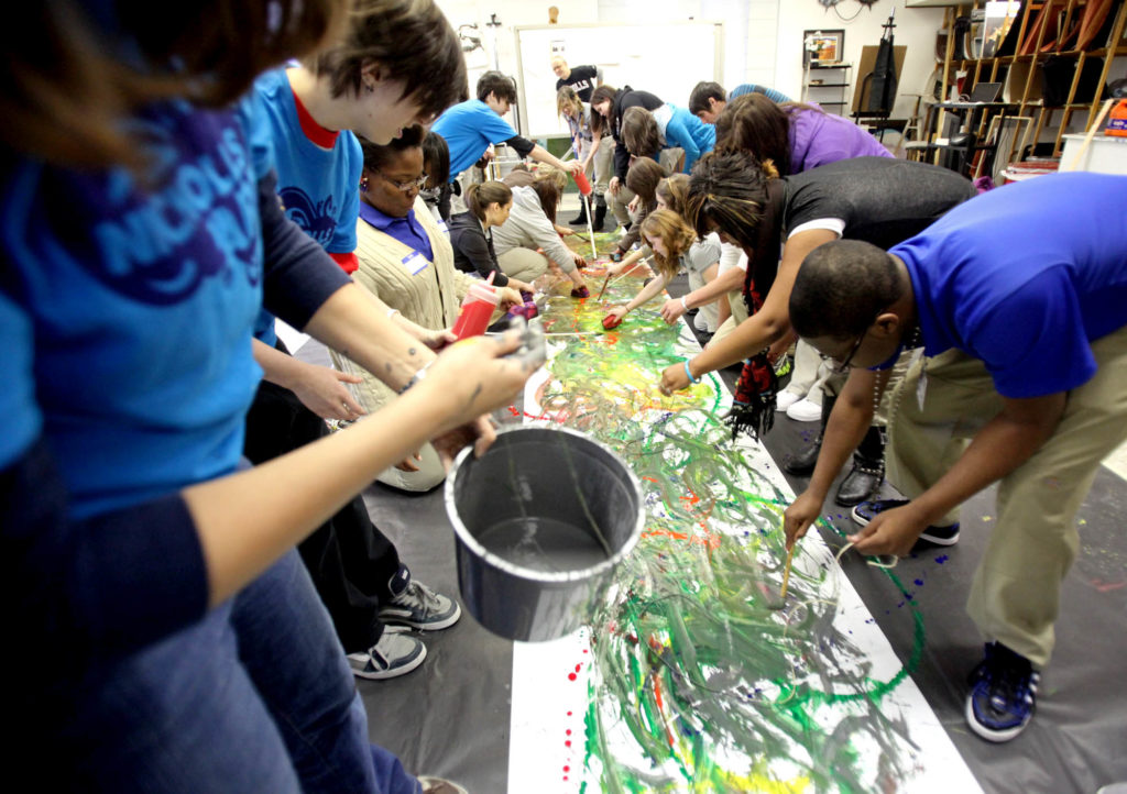 The Department of Art’s largest recruitment event of the year gave students an opportunity to learn about the program as well as participate in hands-on activities. Twelve Nicholls faculty members and 15 high school teachers joined 73 art students from Nicholls to conduct 49 workshops in the various studio areas of Talbot Hall. Pictured are high school students taking turns painting a room-length paper canvas. Students also had the opportunity to attend hands-on workshops in ceramics, printmaking and darkroom photography. To learn more about the Department of Art, go to https://www.nicholls.edu/art/.