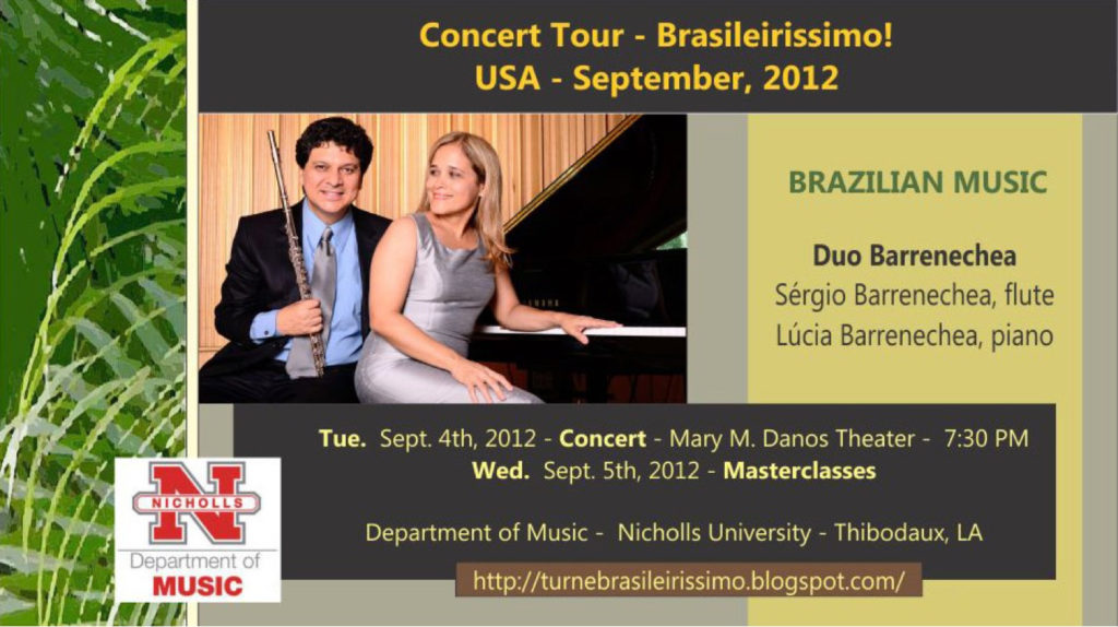 For additional information about the duo, go to turnebrasileirissimo.blogspot.com. Information about the Department of Music is available at www.nicholls.edu/perform.