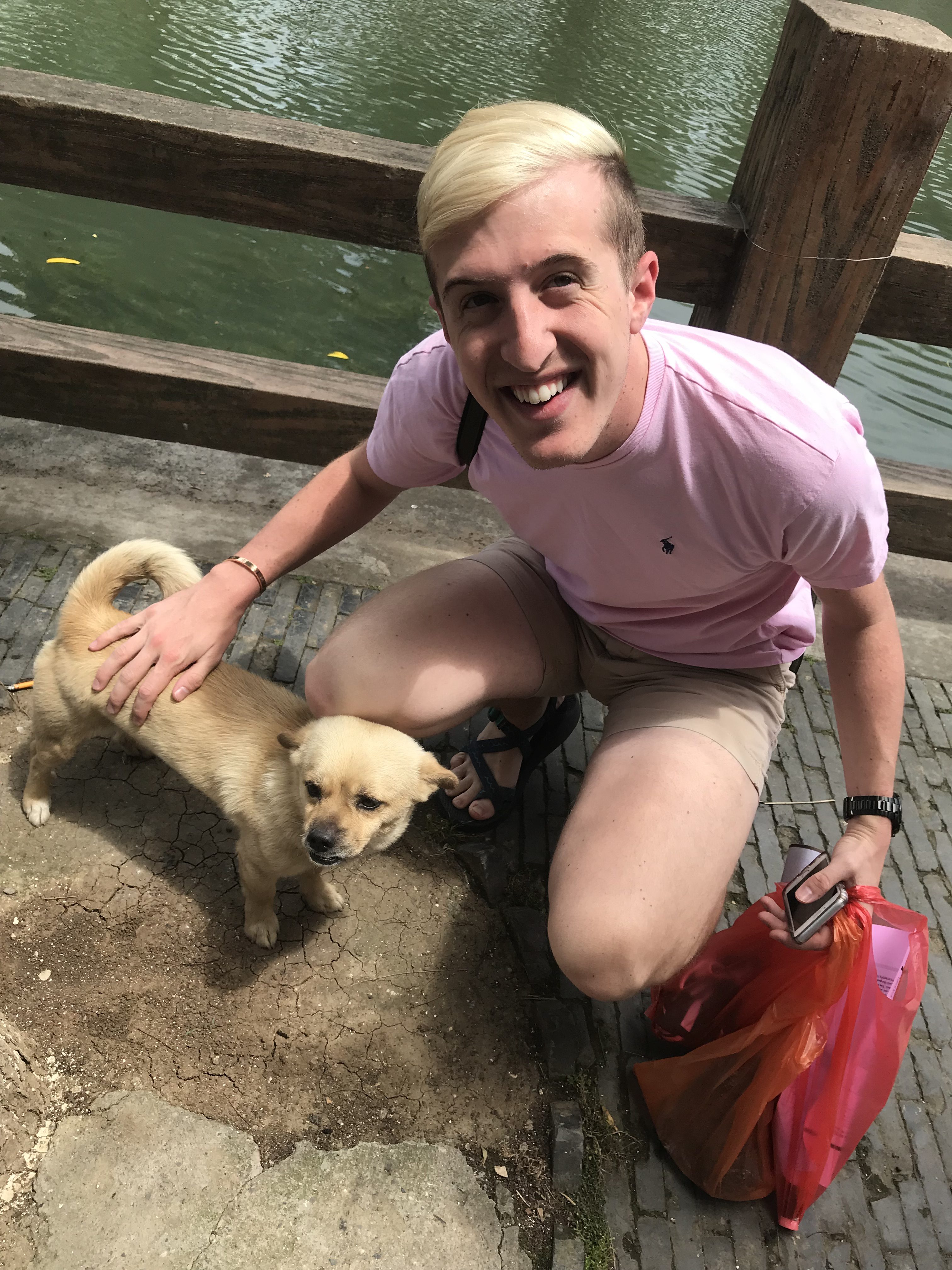 Aside from the great shopping experiences in Zhujiajiao, there were plenty of dogs to befriend along the trip. I found myself stopping at nearly every dog just to pet them, but there was this one dog that especially touched my heart. I met him at the beginning of our trip through Zhujiajiao and made sure to visit him one last time before we left. I even had to take a picture with him because he was just so darn cute!