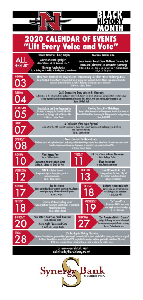 For more information and other events, visit www.nicholls.edu/black-history-month.