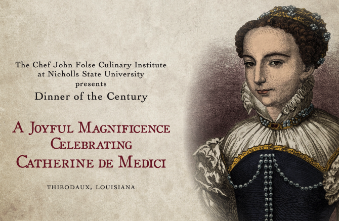 Nicholls students and faculty will pair with top chefs from Chef John Folse & Company to recreate a historic dinner at the Cotillion Ballroom inside of the Bollinger Student Union. The theme for the dinner is “A Joyful Magnificence Celebrating Catherine de Medici.”