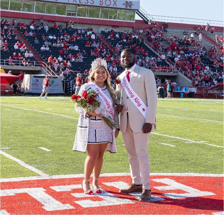 THIBODAUX, La. — Seniors Angela Yanez and Rodney “Duke” Woods Jr. were crowned Nicholls’ Homecoming Queen and King during the homecoming football game halftime on Saturday, Oct. 15, 2022, where the Colonels took on the University of Incarnate Word. The full homecoming court was introduced at a halftime presentation and senior royalty candidates completed the traditional walk across the stadium field.