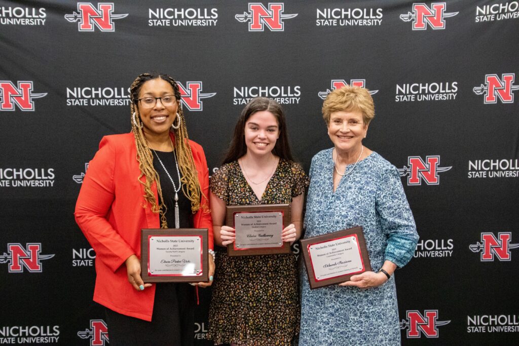 The Women of Achievement Awards are presented at the luncheon to a Nicholls faculty or staff member, a student and a community member who serves as a healthy role model, has contributed to the advancement of her field and to the historical legacy of women, and demonstrates this year’s national theme, “celebrating women who tell our stories.”