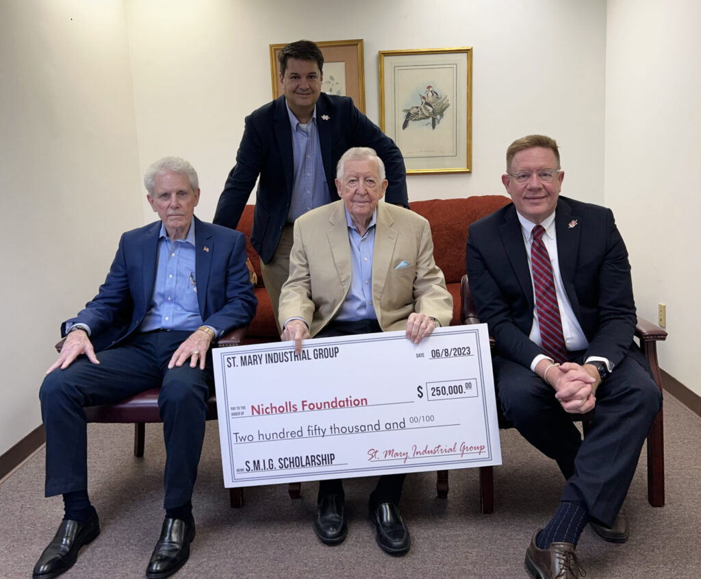 THIBODAUX, La. – Nicholls received $250,000 to create the St. Mary Industrial Group Endowed Scholarship to benefit Nicholls students who are graduates from an East St. Mary Parish high school, including Central Catholic, Morgan City, Berwick, and Patterson High Schools.