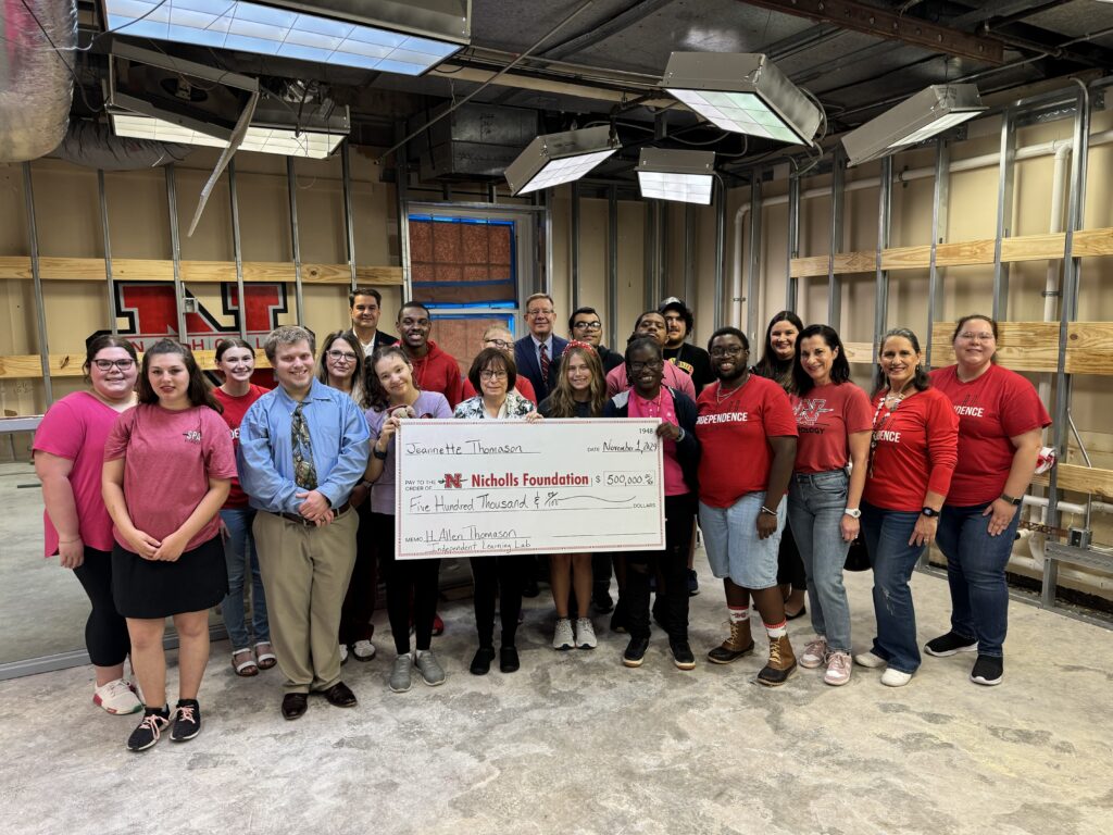 The Nicholls Foundation, an independent 501(c)3 corporation, exists to support the mission of Nicholls State University by seeking gifts and grants and by managing those funds and other assets to support Nicholls through endowed chairs, professorships, scholarships and other enhancement efforts. To learn more about donating to Nicholls, visit nichollsfoundation.org.