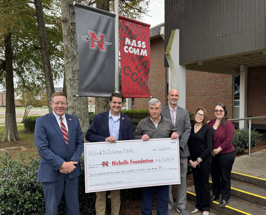 Dr. James Stewart, department head of Mass Communication, said, “Dr. Delahaye represents the type of faculty members Nicholls has attracted through the years, people for whom their position at the University was more vocation than occupation.”
