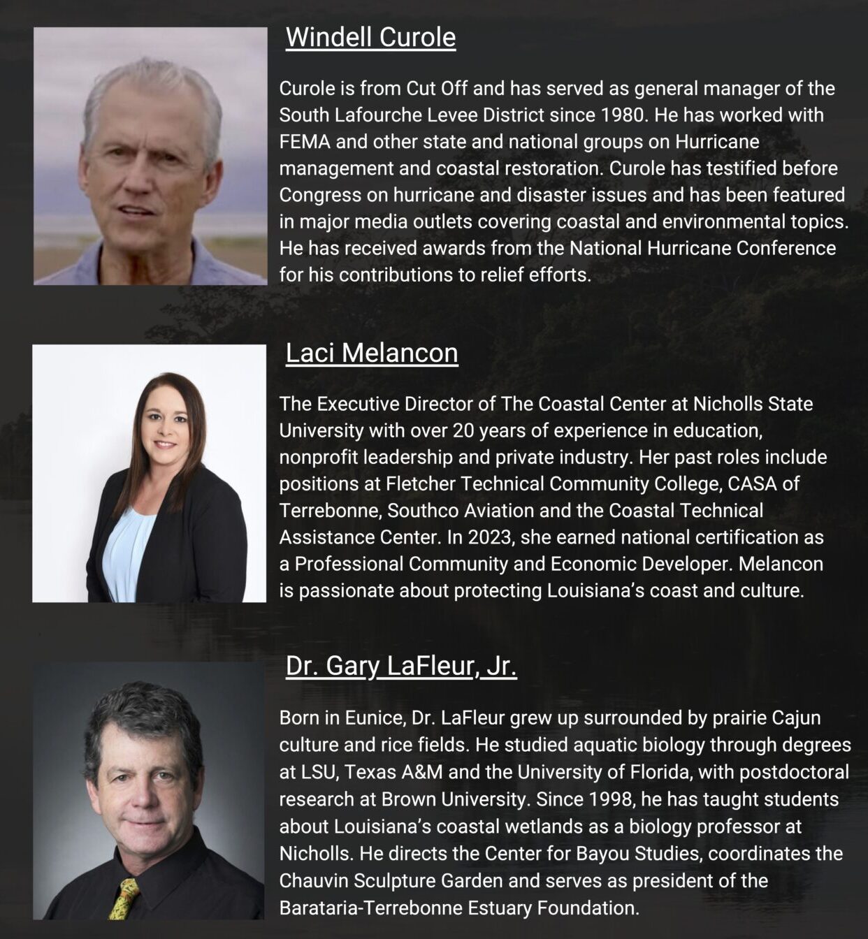 - Laci Melancon – Executive Director of Nicholls State University’s Coastal Center
