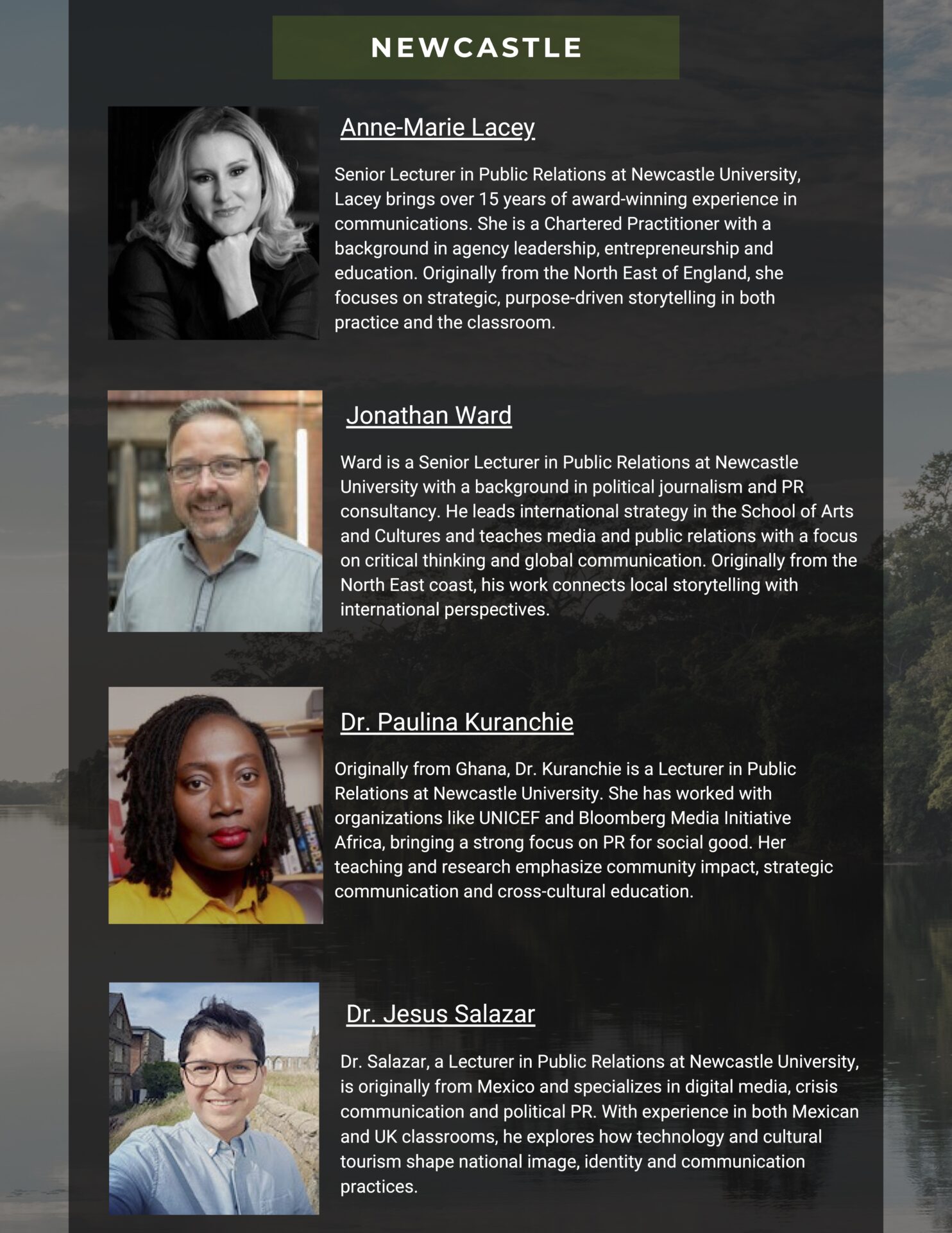 - Anne-Marie Lacey & Jonathan Ward – Senior Lecturers in Public Relations, Newcastle University, United Kingdom
