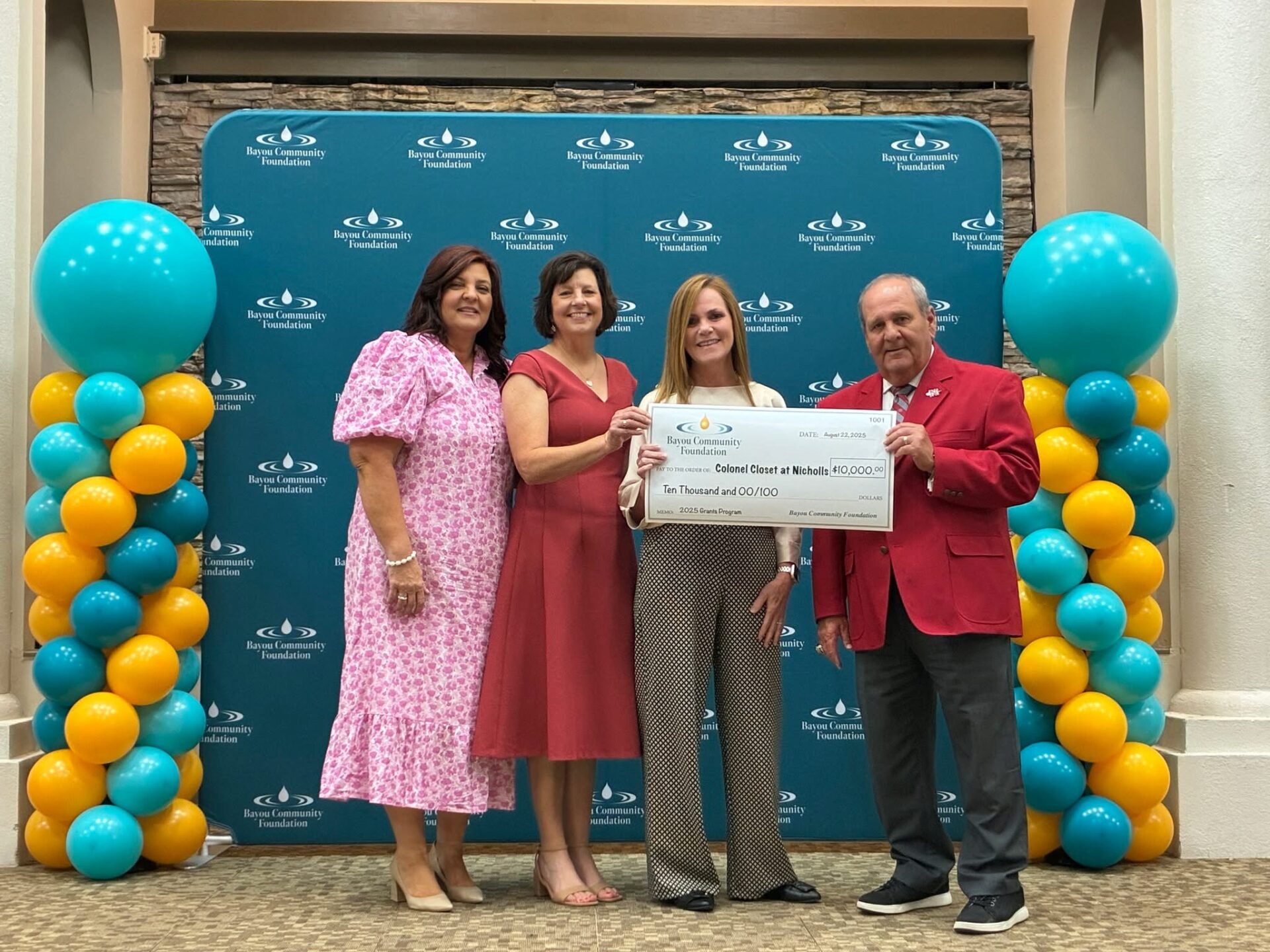 The Bayou Community Foundation contributed a $10,000 grant to Nicholls State University’s Colonel Closet for the third year in a row. This will aid the program in providing free resources to Nicholls students, faculty and staff in need, such as food and drink items, cleaning and bath supplies, personal hygiene necessities, basic household goods and some emergency financial assistance.